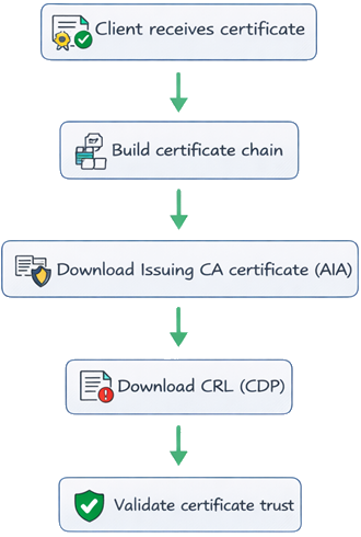 If the issuing CA certificate is not already present locally, the client retrieves it using the AIA URL embedded in the certificate.